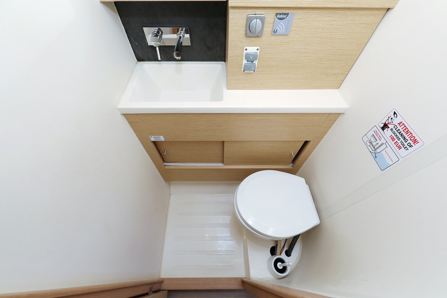 Plachetnice Terna je v majitelské úpravě, přední kabina je proto opravdu prostorná s velkou manželskou postelí, samostatnou toaletou a odděleným sprchovým koutem!